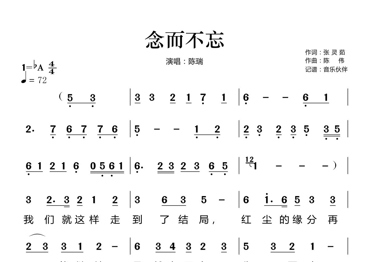 念而不忘简谱 - 陈瑞演唱