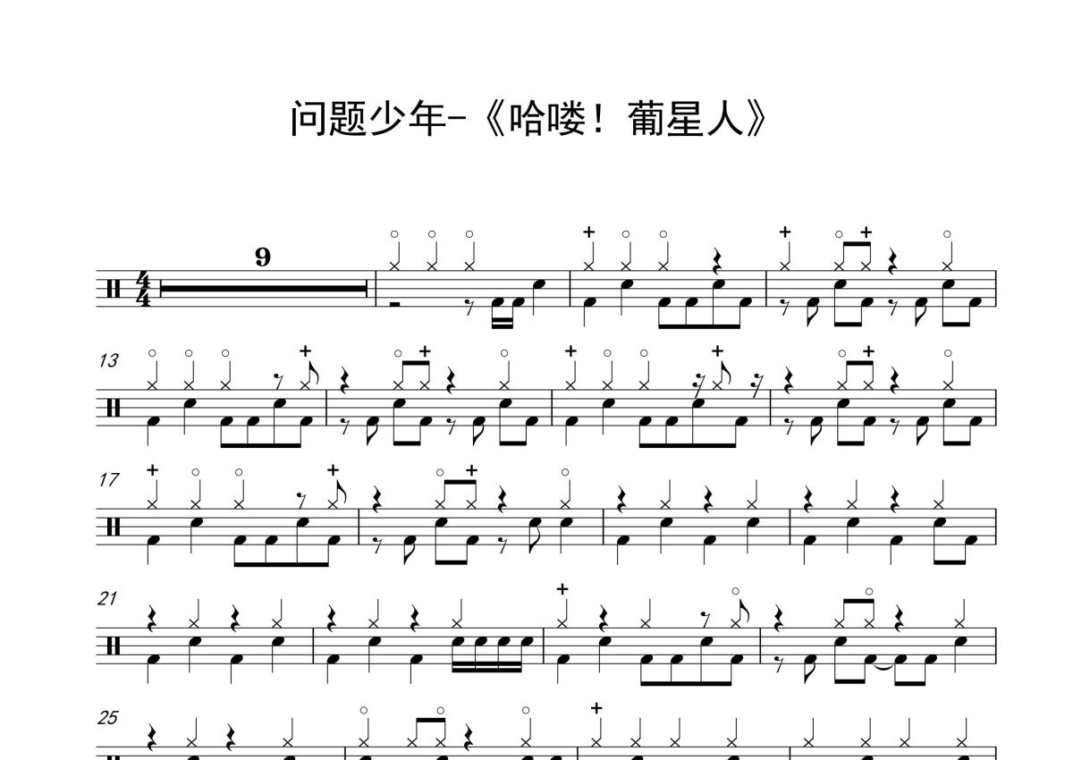《哈喽!葡星人》《问题少年》鼓谱 - 架子鼓谱
