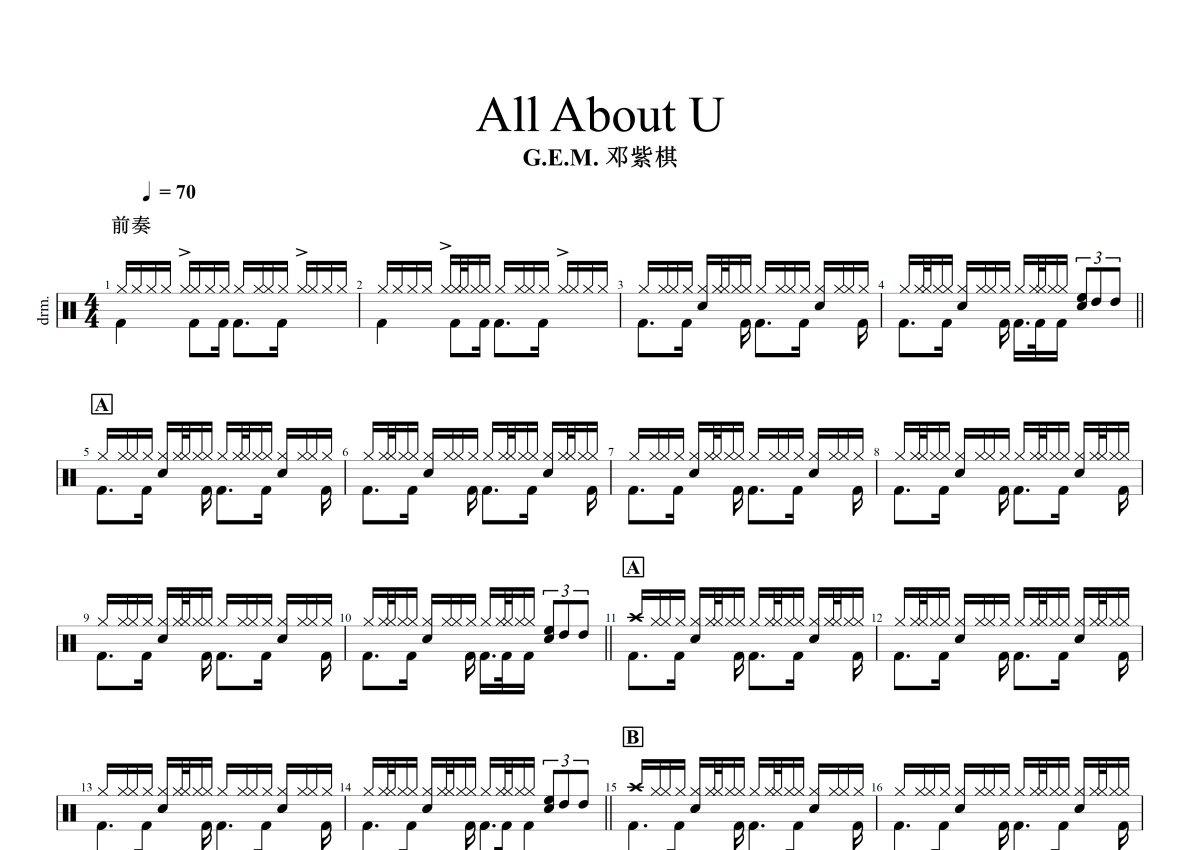 C.E.M. 邓紫棋《All About U》鼓谱 - 架子鼓谱