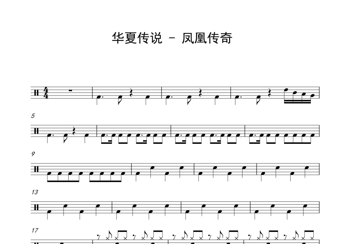 凤凰传奇《华夏传说》鼓谱 - 架子鼓谱