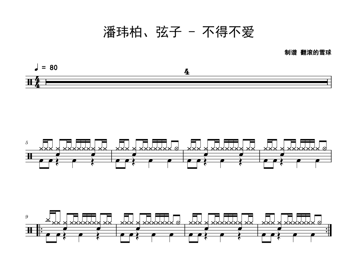 潘玮柏/弦子《不得不爱》鼓谱 - 架子鼓谱