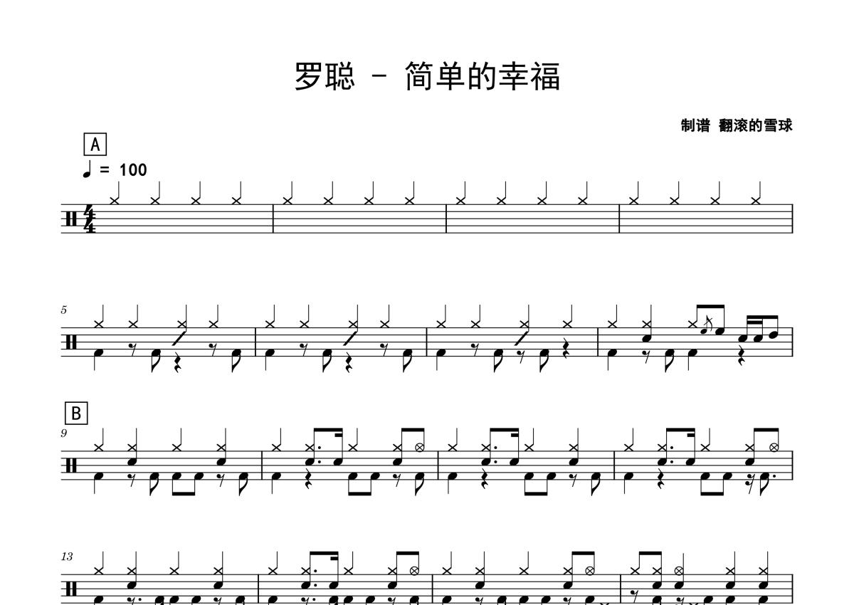罗聪《简单的幸福》鼓谱 - 架子鼓谱