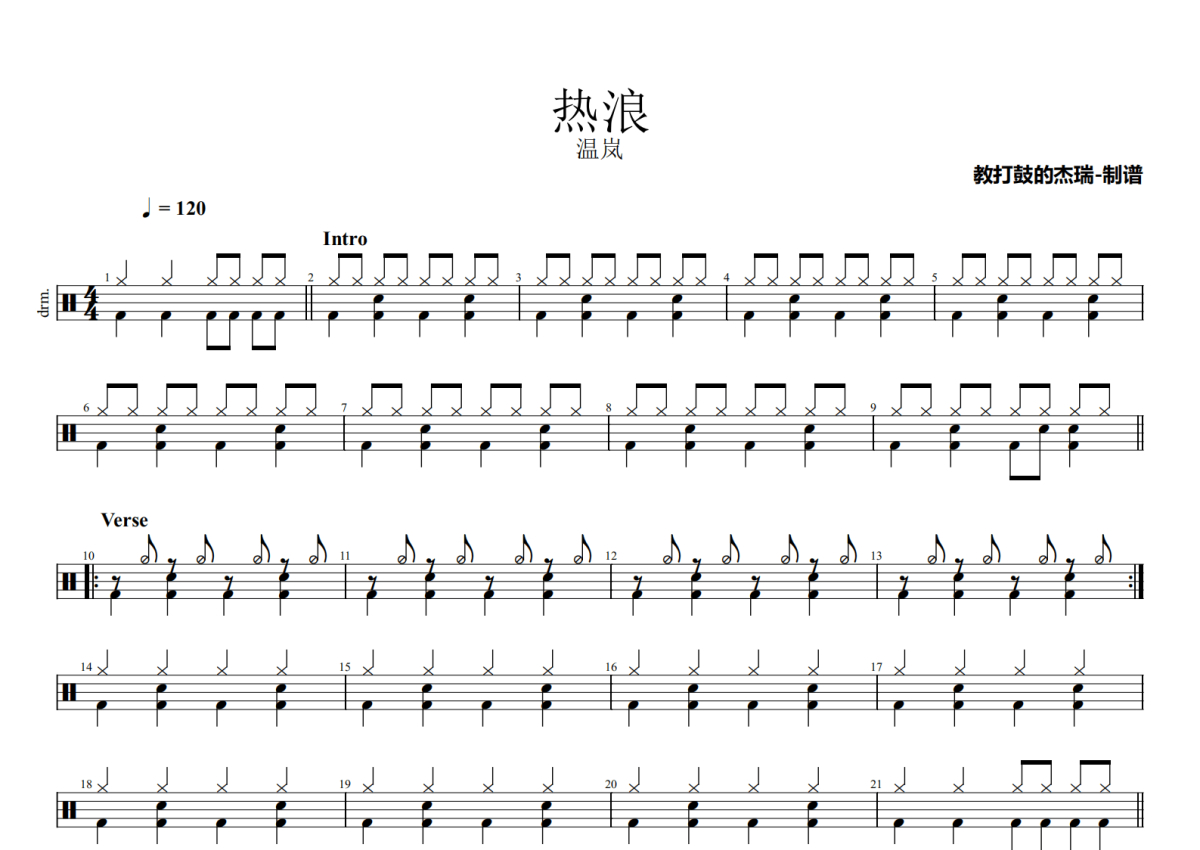 温岚《热浪》鼓谱 - 架子鼓谱