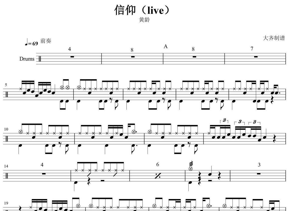 黄龄《信仰》鼓谱 - 架子鼓谱 - live
