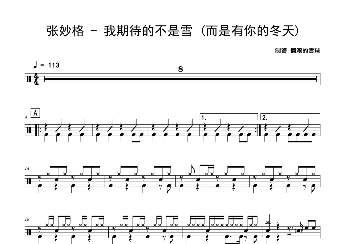 张妙格《我期待的不是雪 (而是有你的冬天)》鼓谱 - 架子鼓谱