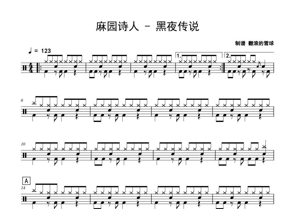 麻园诗人《黑夜传说》鼓谱 - 架子鼓谱