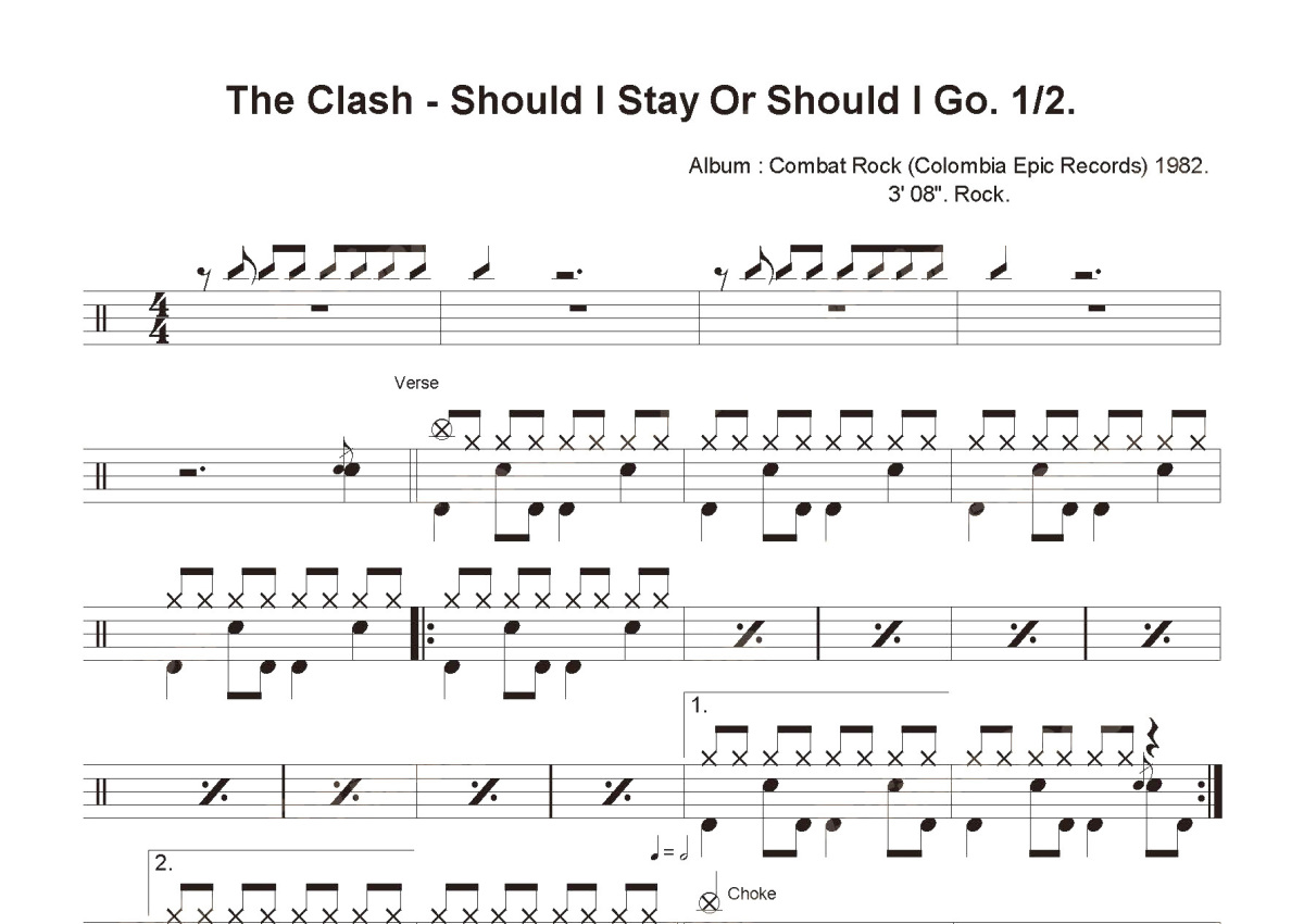 Clash《Should I Stay Or Should I Go》鼓谱 - 架子鼓谱