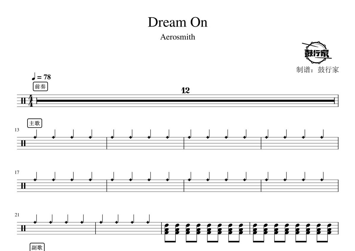 Aerosmith《Dream On》鼓谱 - 架子鼓谱