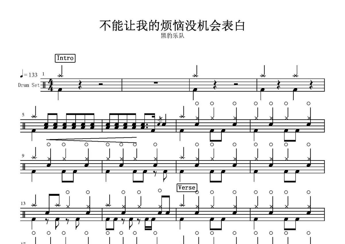 黑豹乐队《不能让我的烦恼没机会表白》鼓谱 - 架子鼓谱