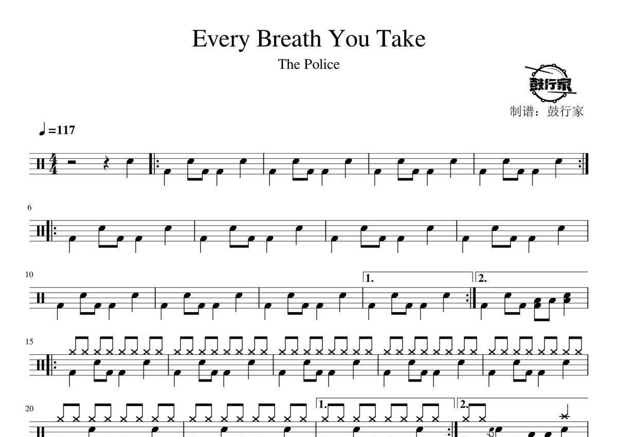 The police《Every Breath You Take》鼓谱 - 架子鼓谱