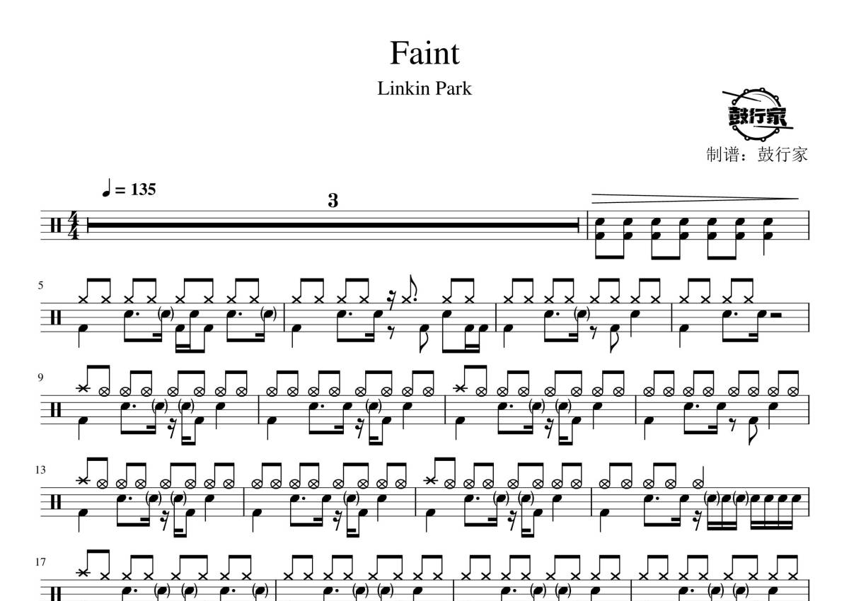 Linkin Park《Faint》鼓谱 - 架子鼓谱