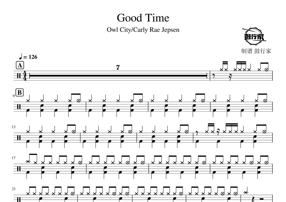 Owl City/Carly Rae Jepsen《Good Time》鼓谱 - 架子鼓谱