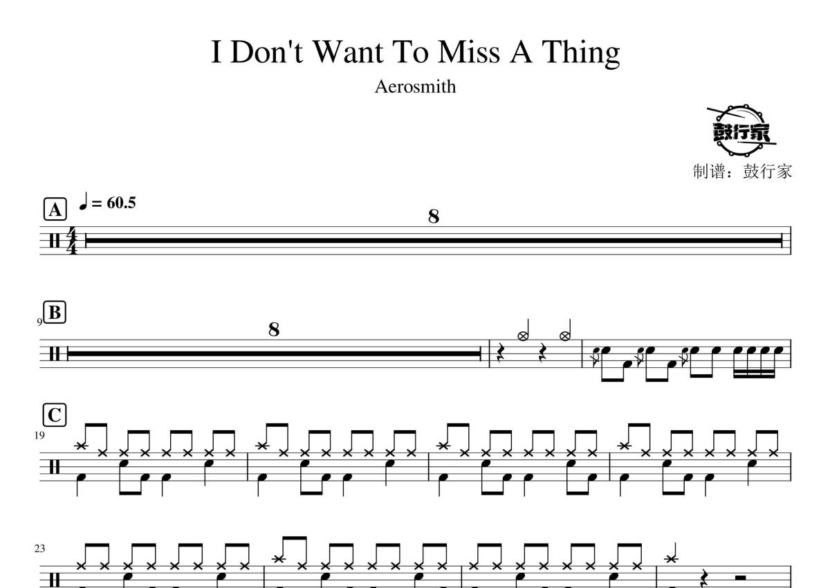 Aerosmith《I Don't Want To Miss A Thing》鼓谱 - 架子鼓谱