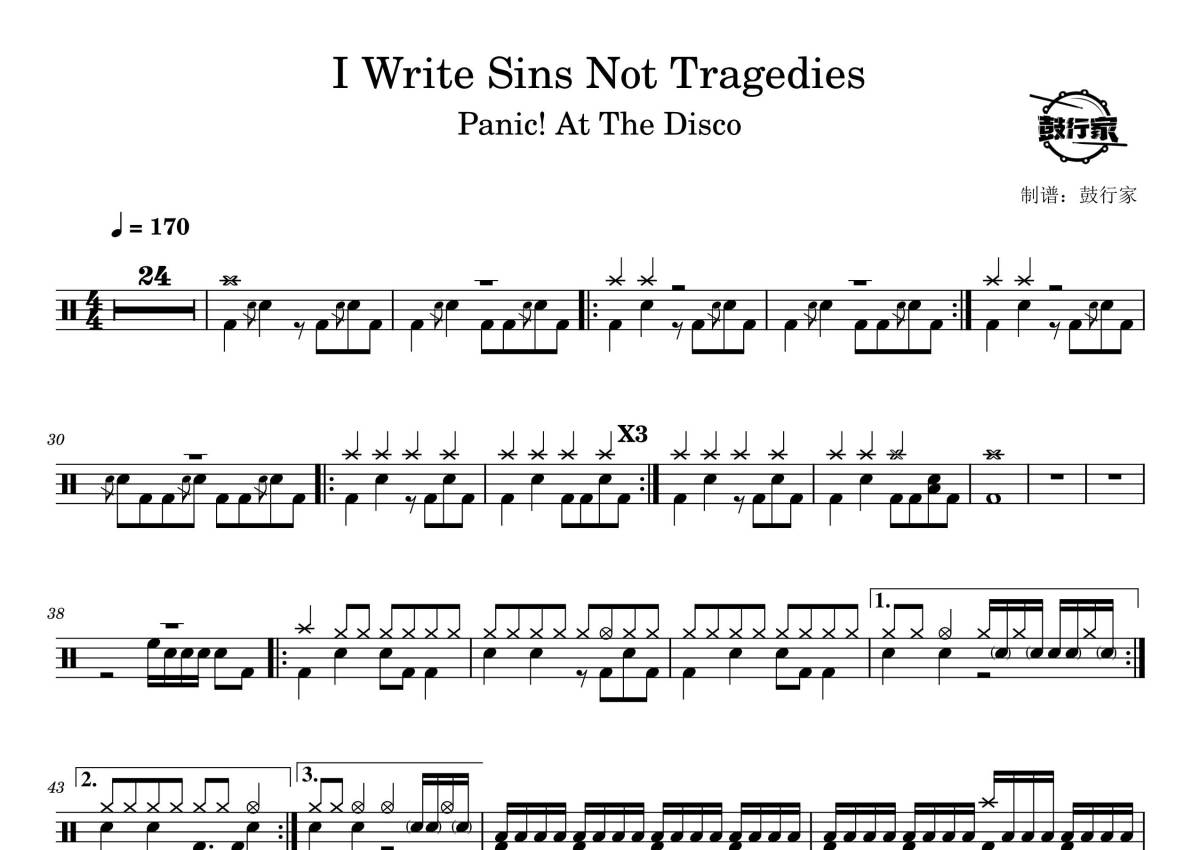 Panic! At The Disco《I Write Sins Not Tragedies》鼓谱 - 架子鼓谱