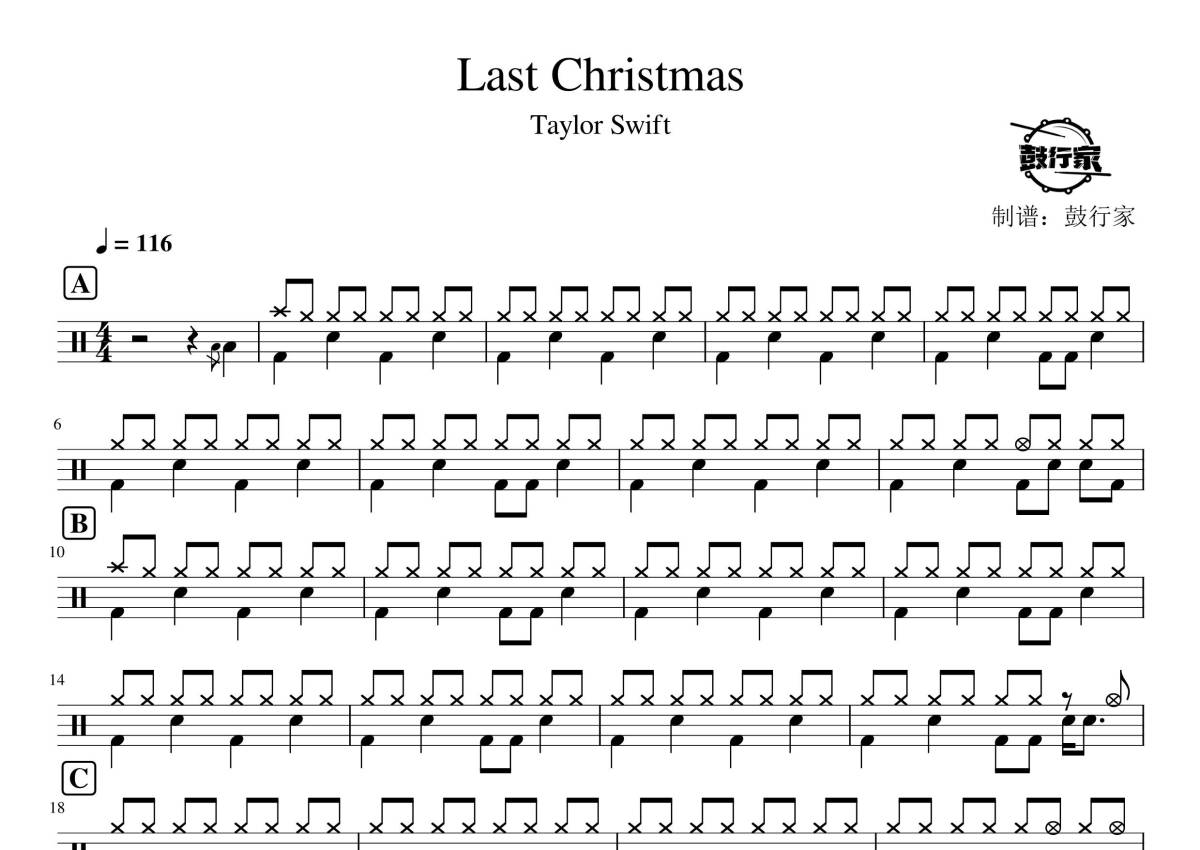 Taylor Swift《Last Christmas》鼓谱 - 架子鼓谱