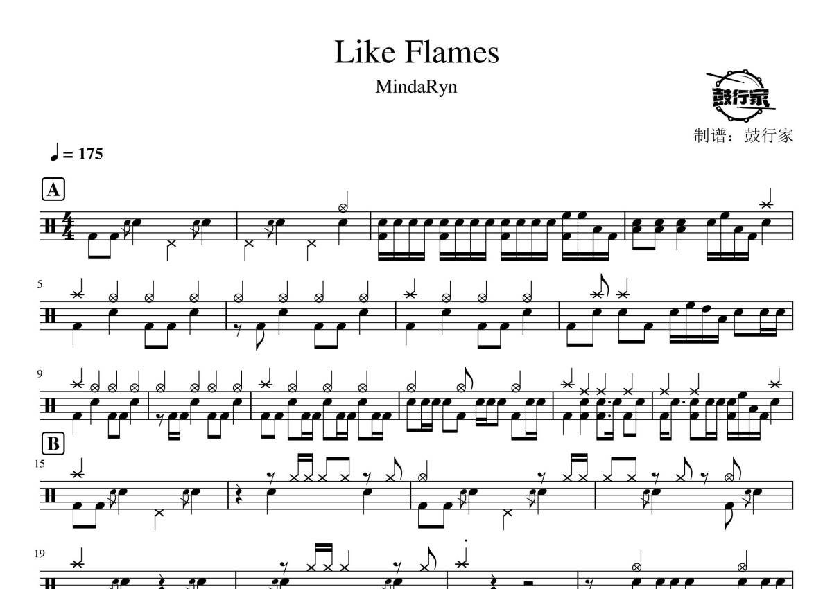 MindaRyn《Like Flames》鼓谱 - 架子鼓谱