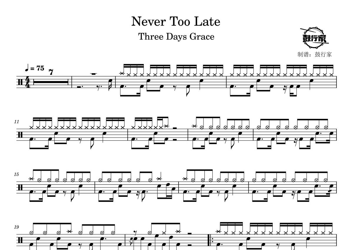 Three Days Grace《Never Too Late》鼓谱 - 架子鼓谱