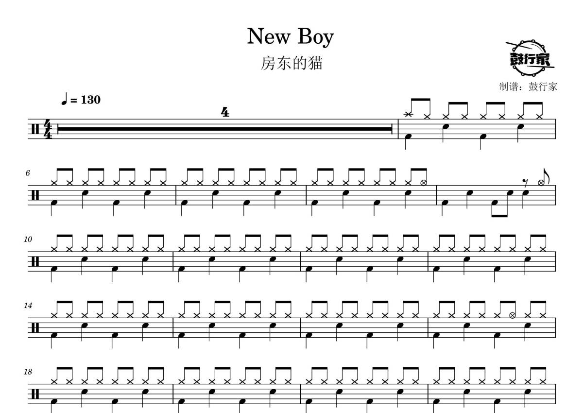 房东的猫《New Boy》鼓谱 - 架子鼓谱