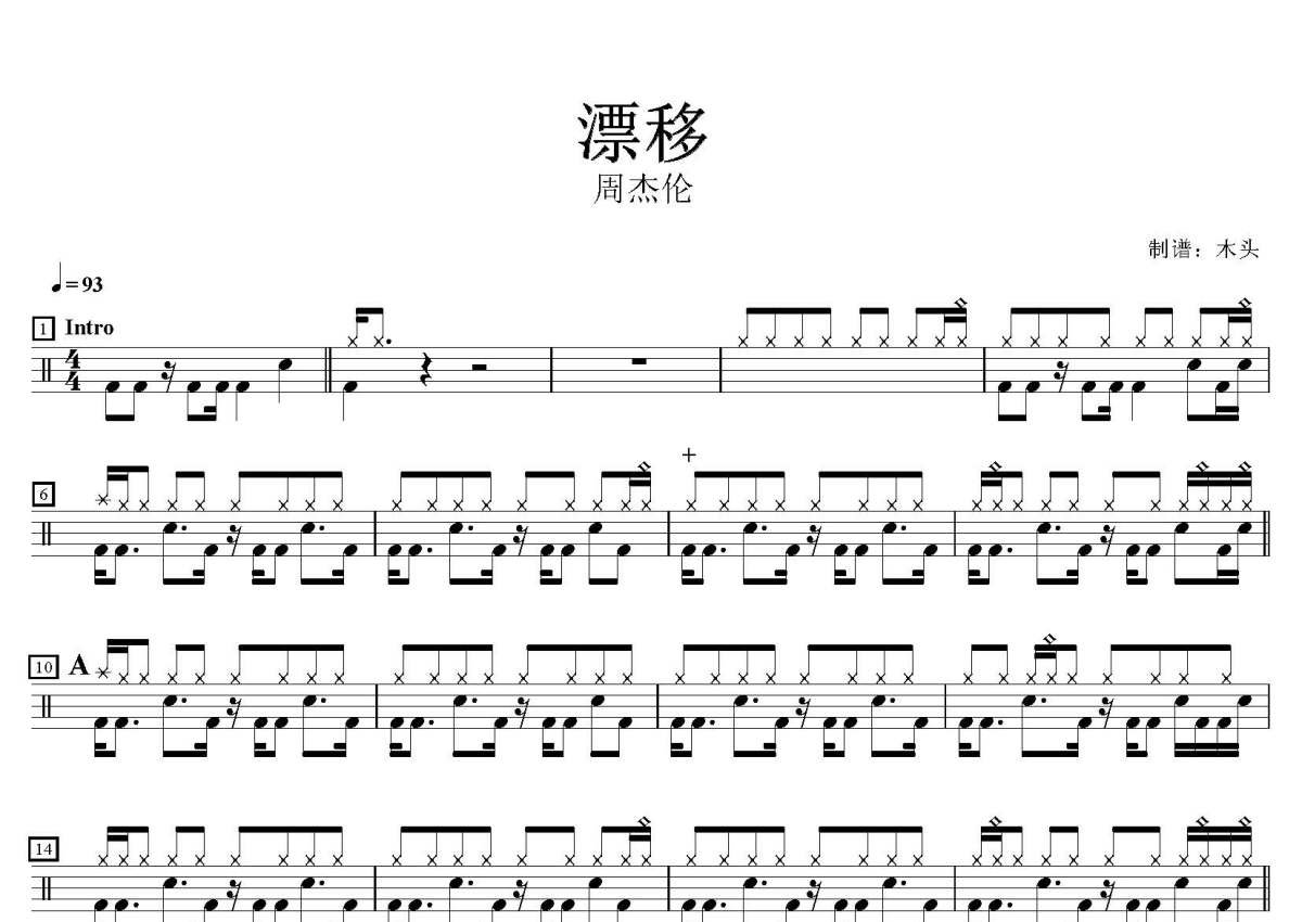 周杰伦《漂移》鼓谱 - 架子鼓谱