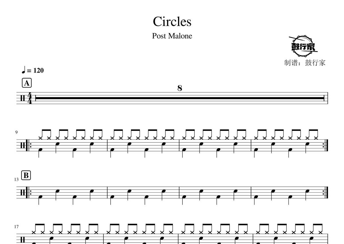 Post Malone《Circles》鼓谱 - 架子鼓谱