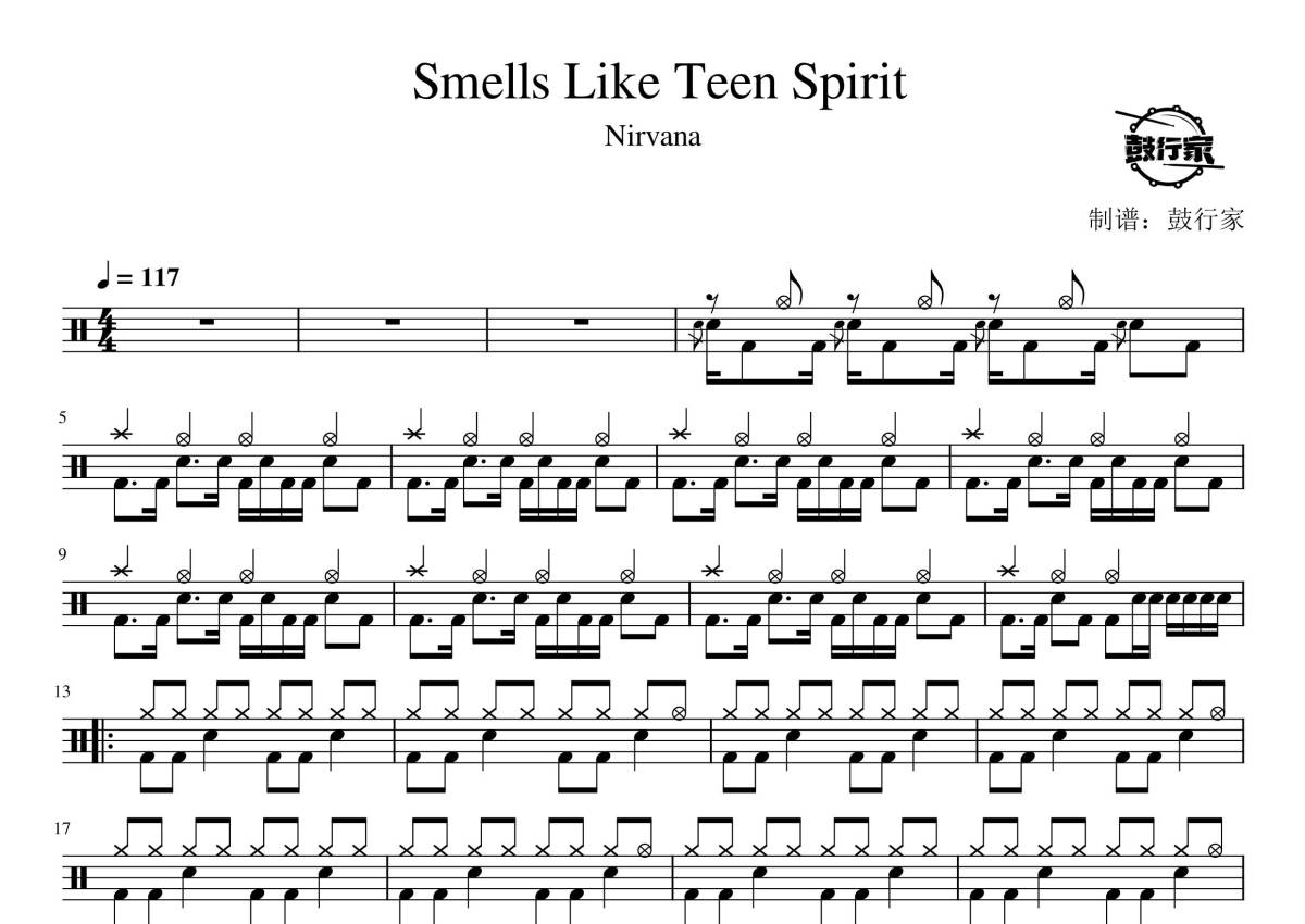Nirvana《Smells Like Teen Spirit》鼓谱 - 架子鼓谱