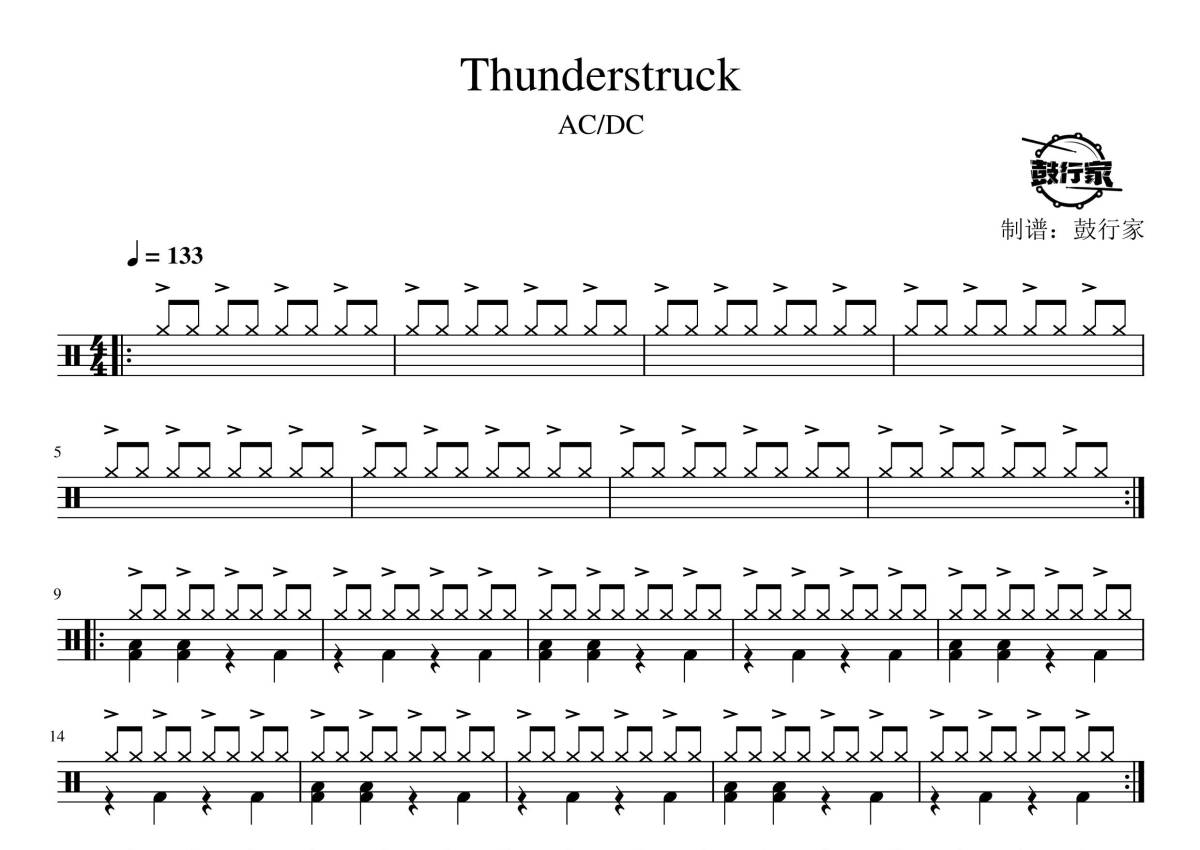 AC/DC《Thunderstruck》鼓谱 - 架子鼓谱