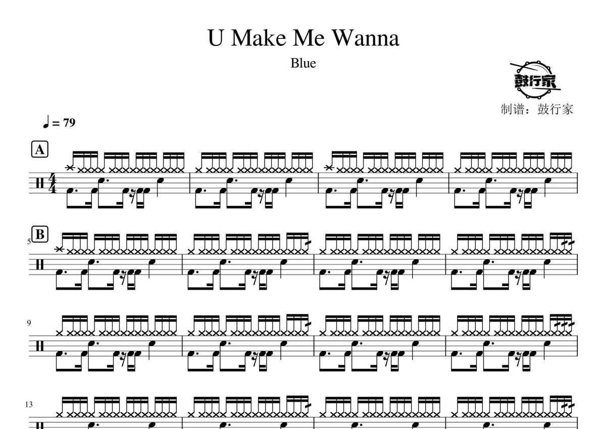 Blue《U Make Me Wanna》鼓谱 - 架子鼓谱