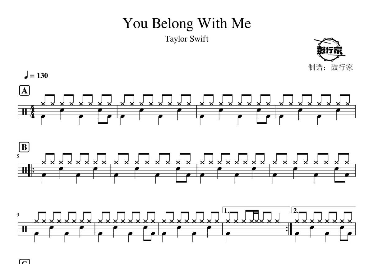 Taylor Swift《You Belong With Me》鼓谱 - 架子鼓谱