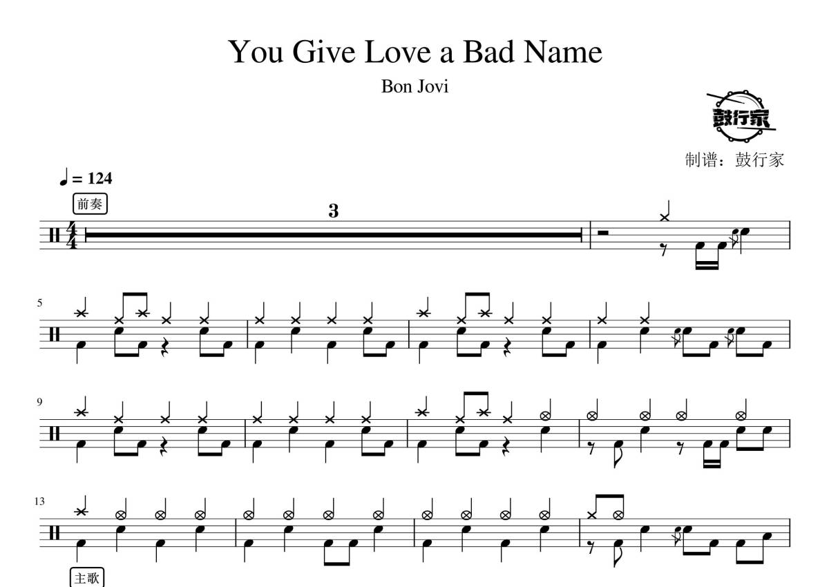 Bon Jovi《You Give Love A Bad Name》鼓谱 - 架子鼓谱