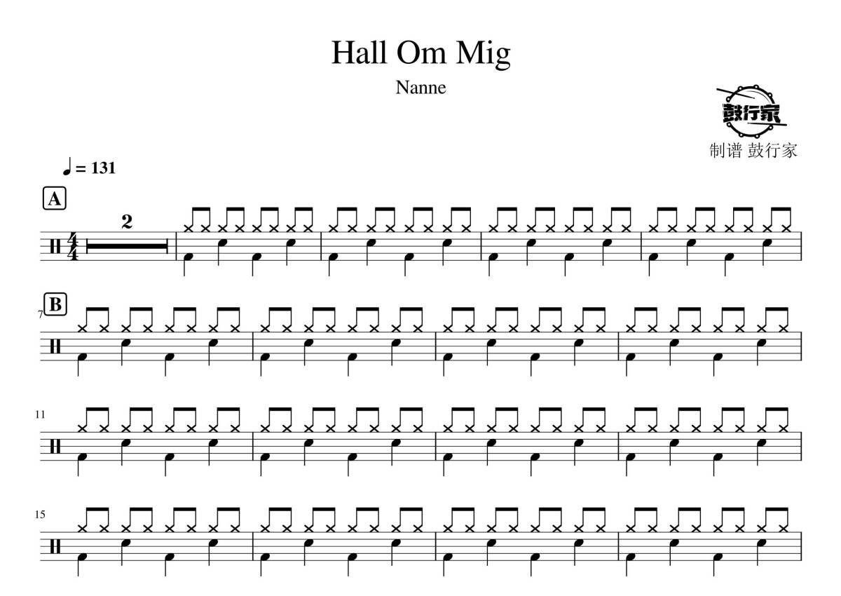 Nanne《hall om mig》鼓谱 - 架子鼓谱