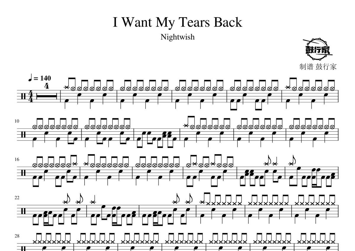 Nightwish《i want my tears back》鼓谱 - 架子鼓谱