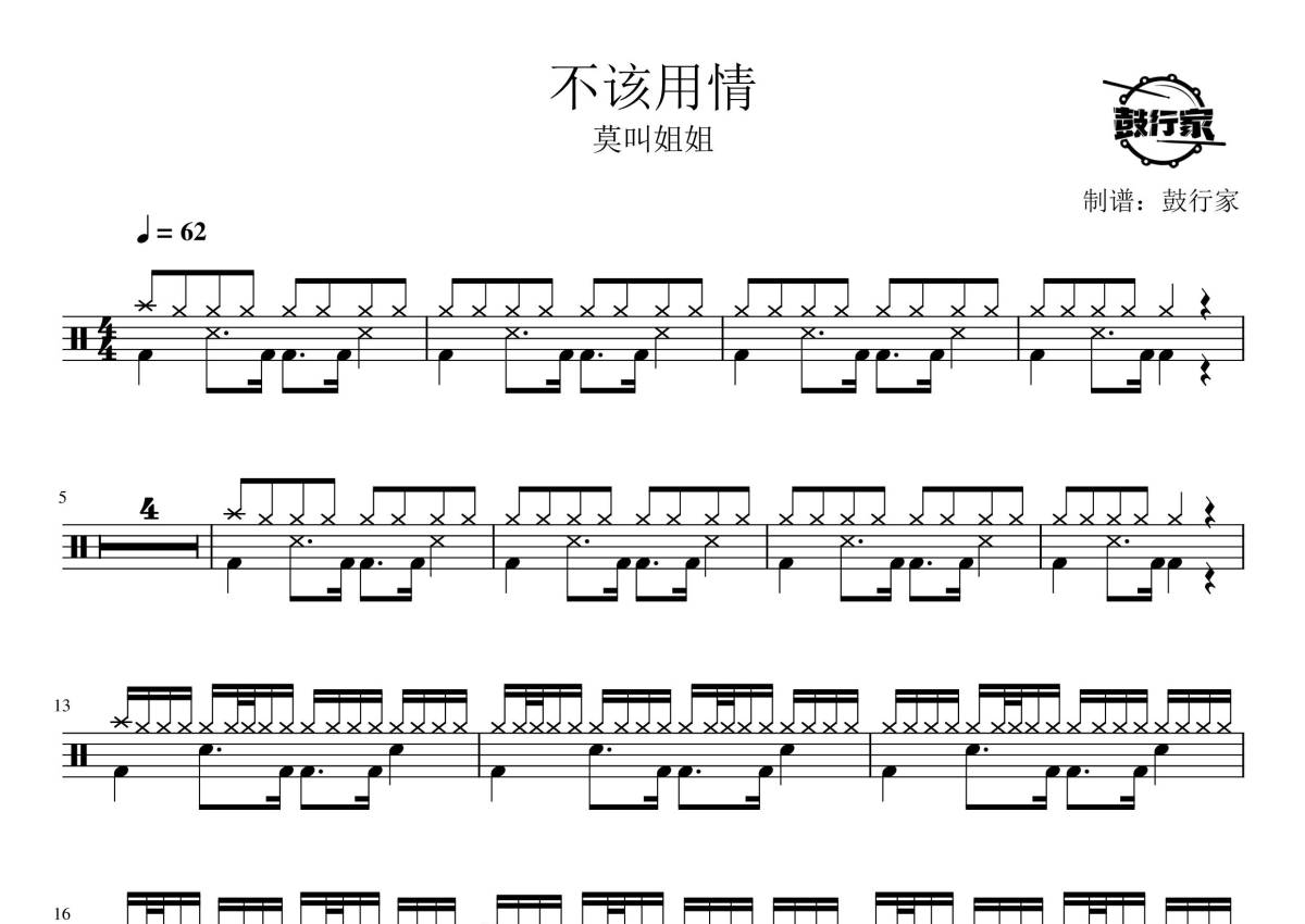莫叫姐姐《不该用情》鼓谱 - 架子鼓谱