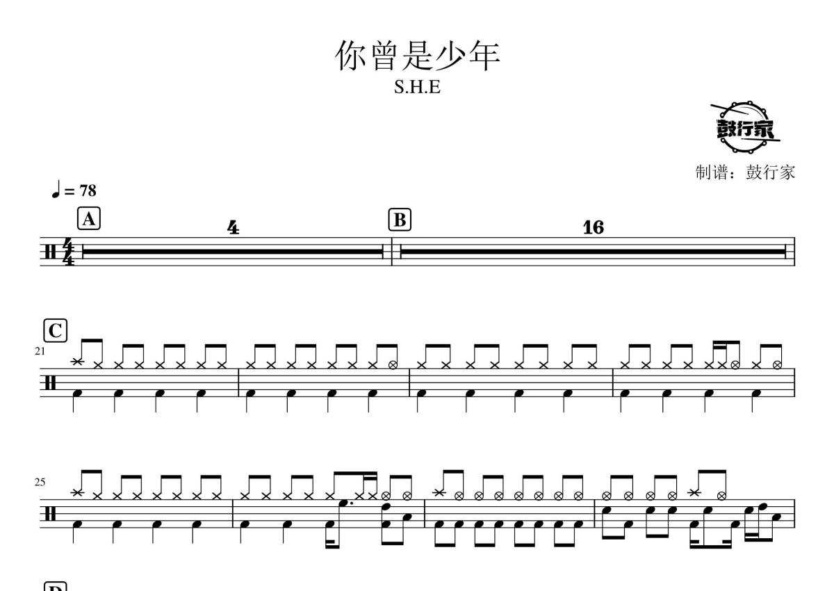 SHE《你曾是少年》鼓谱 - 架子鼓谱