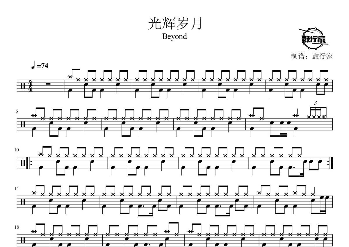 Beyond《光辉岁月》鼓谱 - 架子鼓谱