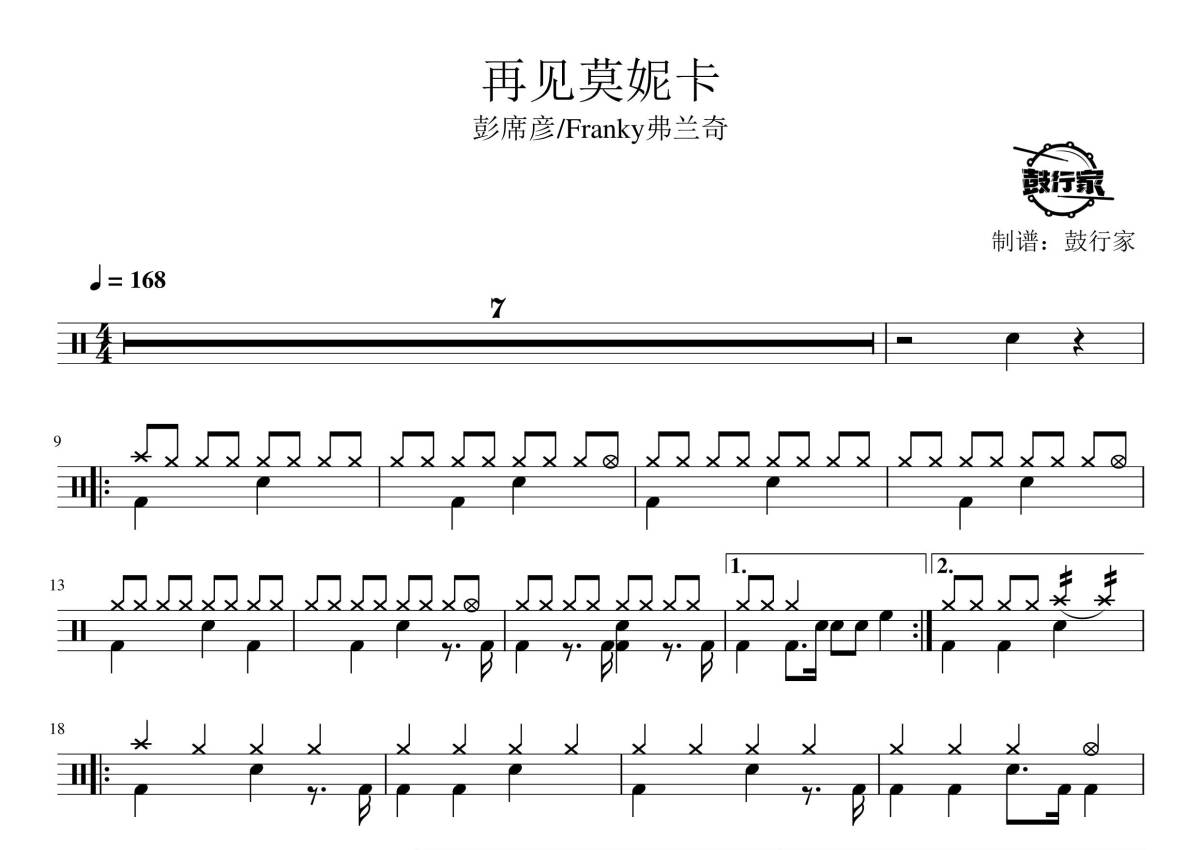 彭席彦/Franky弗兰奇《再见莫妮卡》鼓谱 - 架子鼓谱