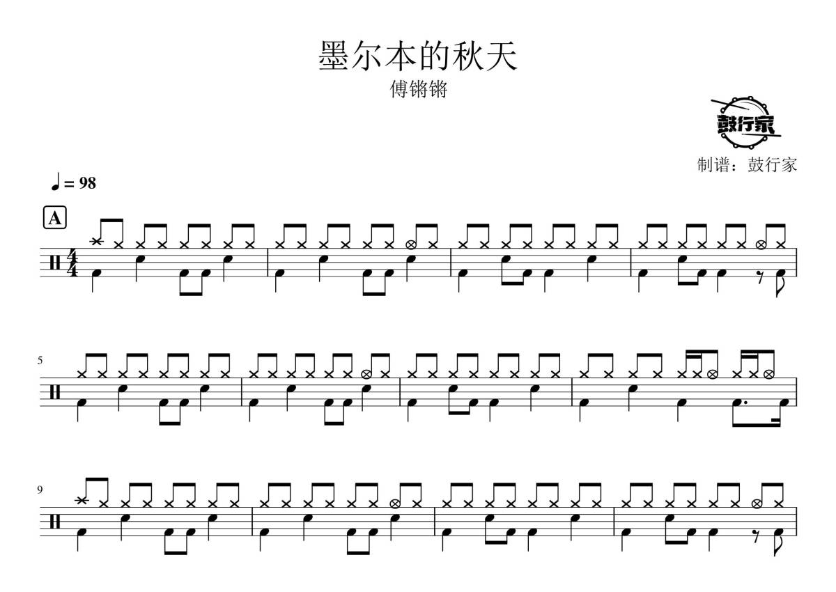 傅锵锵《墨尔本的秋天》鼓谱 - 架子鼓谱