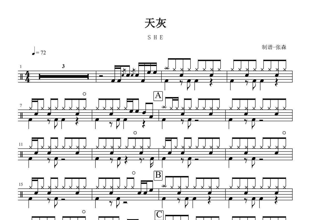 SHE《天灰》鼓谱 - 架子鼓谱