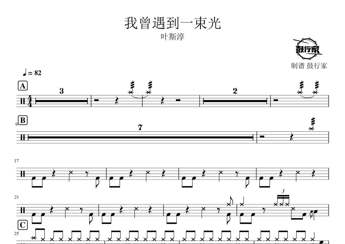 叶斯淳《我曾遇到一束光》鼓谱 - 架子鼓谱