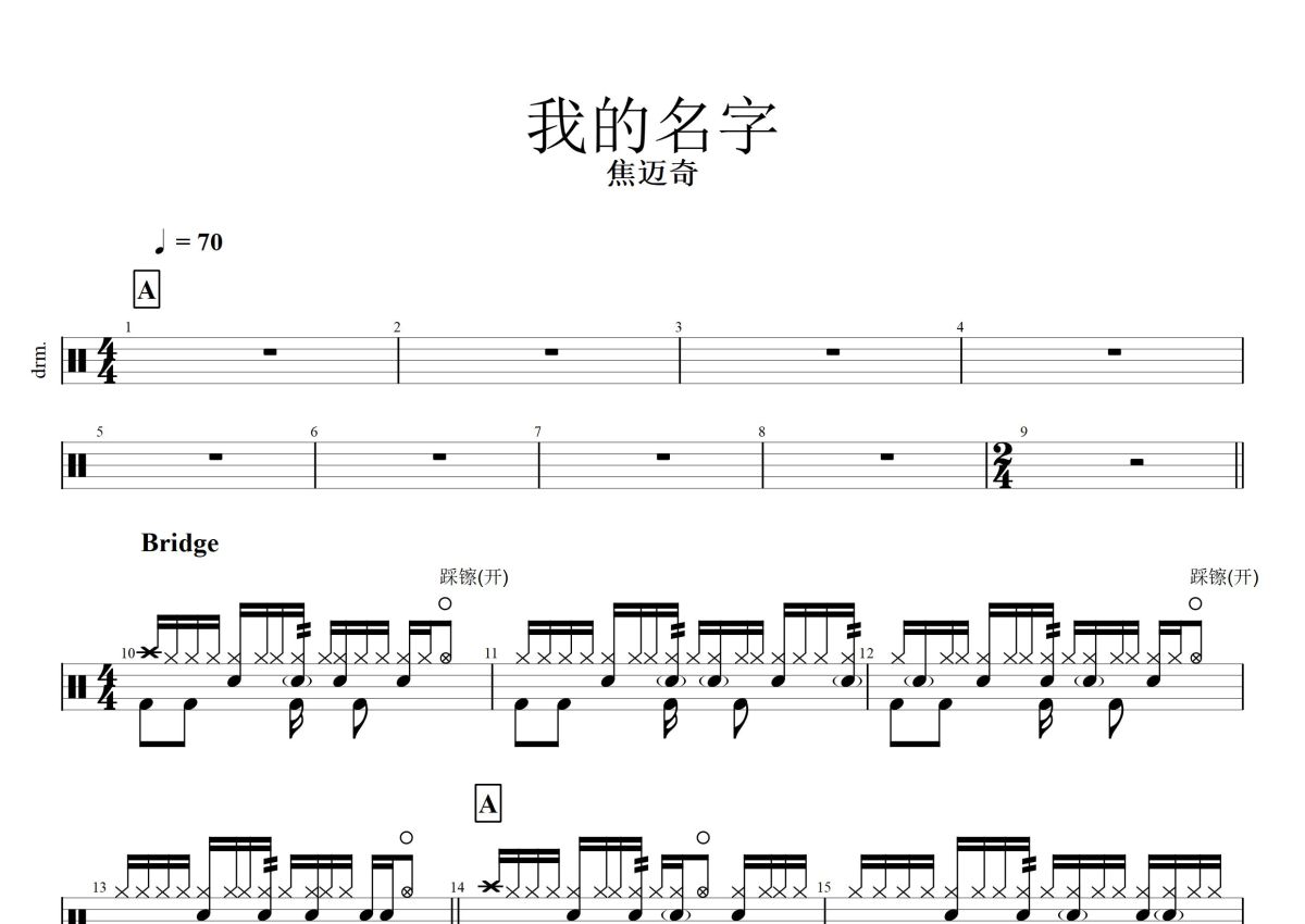 焦迈奇《我的名字》鼓谱 - 架子鼓谱
