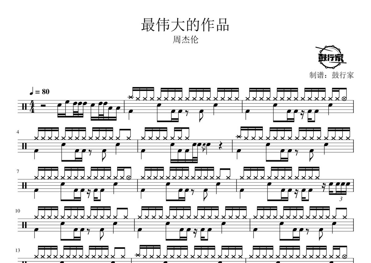 周杰伦《最伟大的作品》鼓谱 - 架子鼓谱