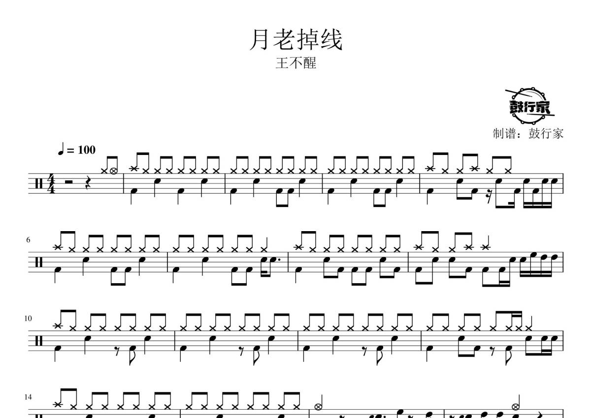 《月老掉线》是王不醒演唱的一首歌曲,拍号为4/4拍,歌曲速度为每分钟100拍,这份鼓谱共有三张高清图谱,图谱由 @鼓行家 编配上传,图谱使用五线谱编配,使用这份月老掉线架子鼓谱,你将能够轻松地敲打出这首王不醒的月老掉线,快来尝试吧。