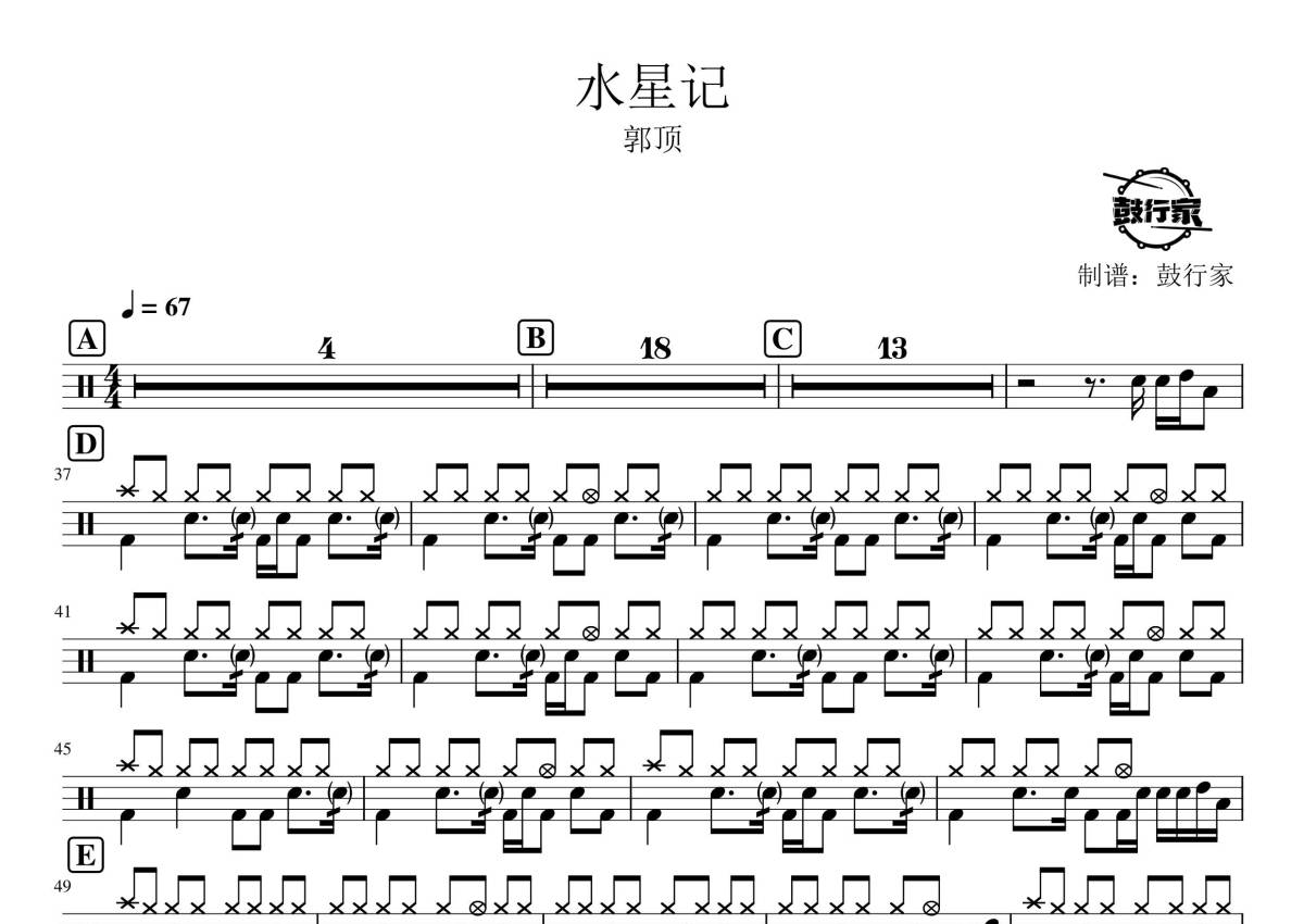 郭顶《水星记》鼓谱 - 架子鼓谱