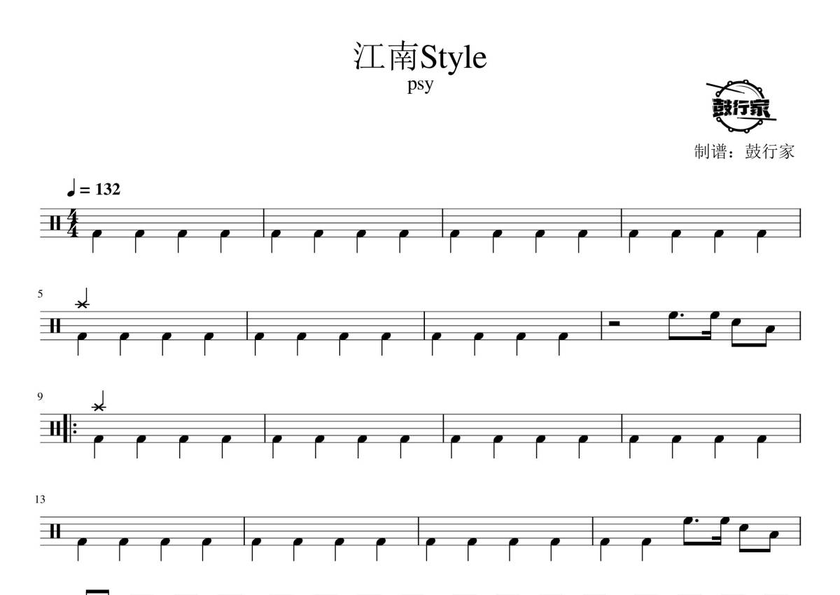 鸟叔(朴载相psy)《江南style》鼓谱 - 架子鼓谱