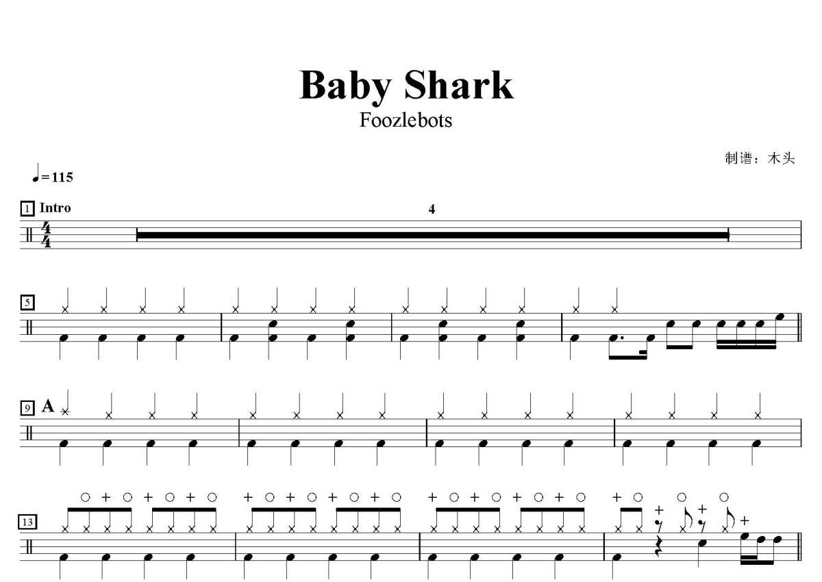 Foozlebots《Baby Shark》鼓谱 - 架子鼓谱