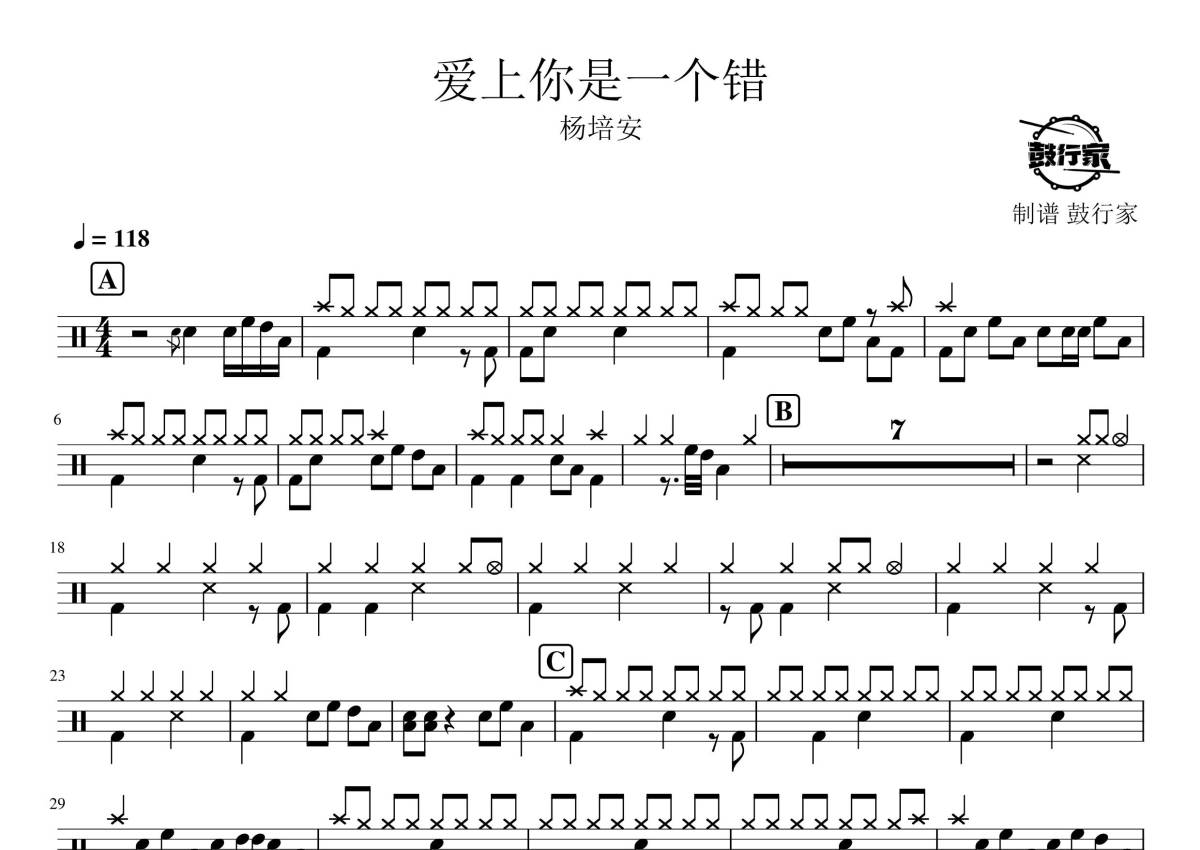 杨培安《爱上你是一个错》鼓谱 - 架子鼓谱
