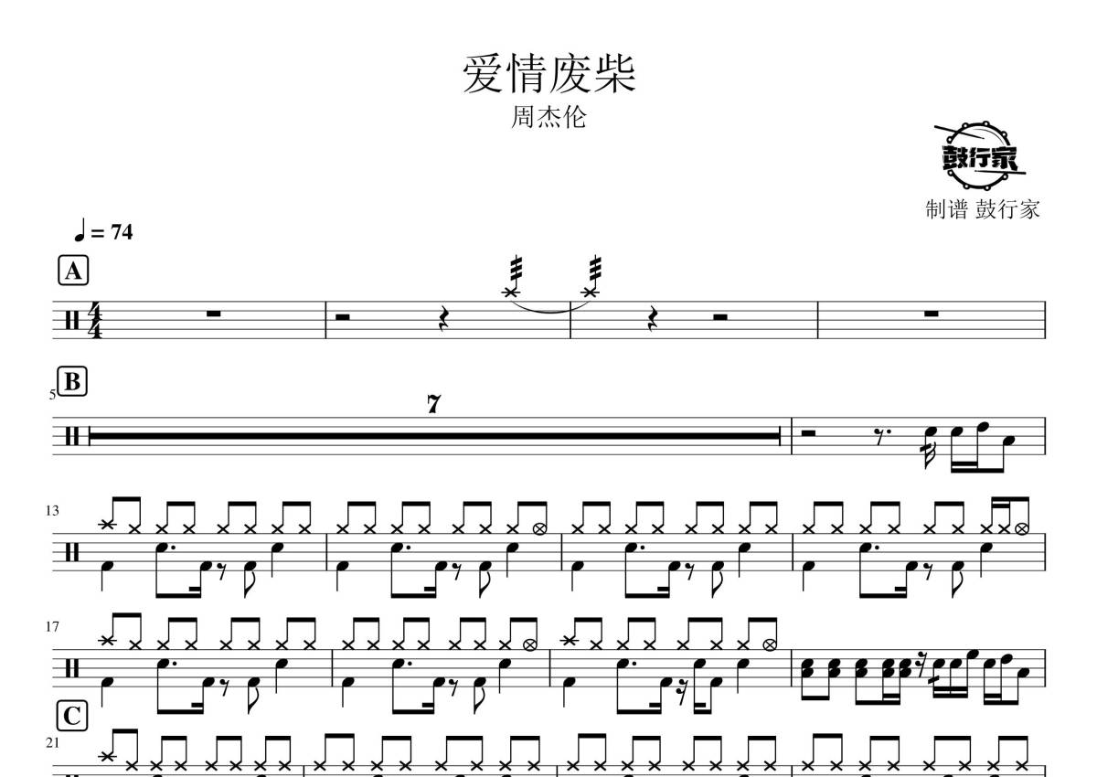 周杰伦《爱情废柴》鼓谱 - 架子鼓谱