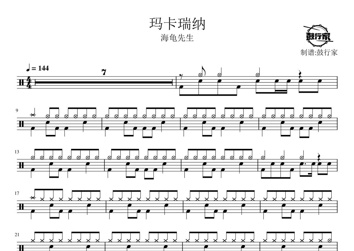 海龟先生《玛卡瑞纳》鼓谱 - 架子鼓谱