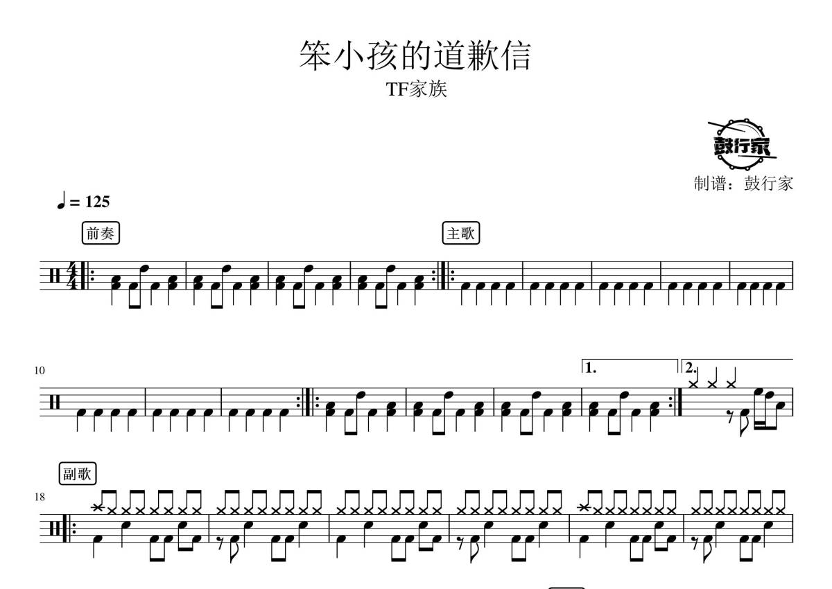 TF家族《笨小孩的道歉信》鼓谱 - 架子鼓谱