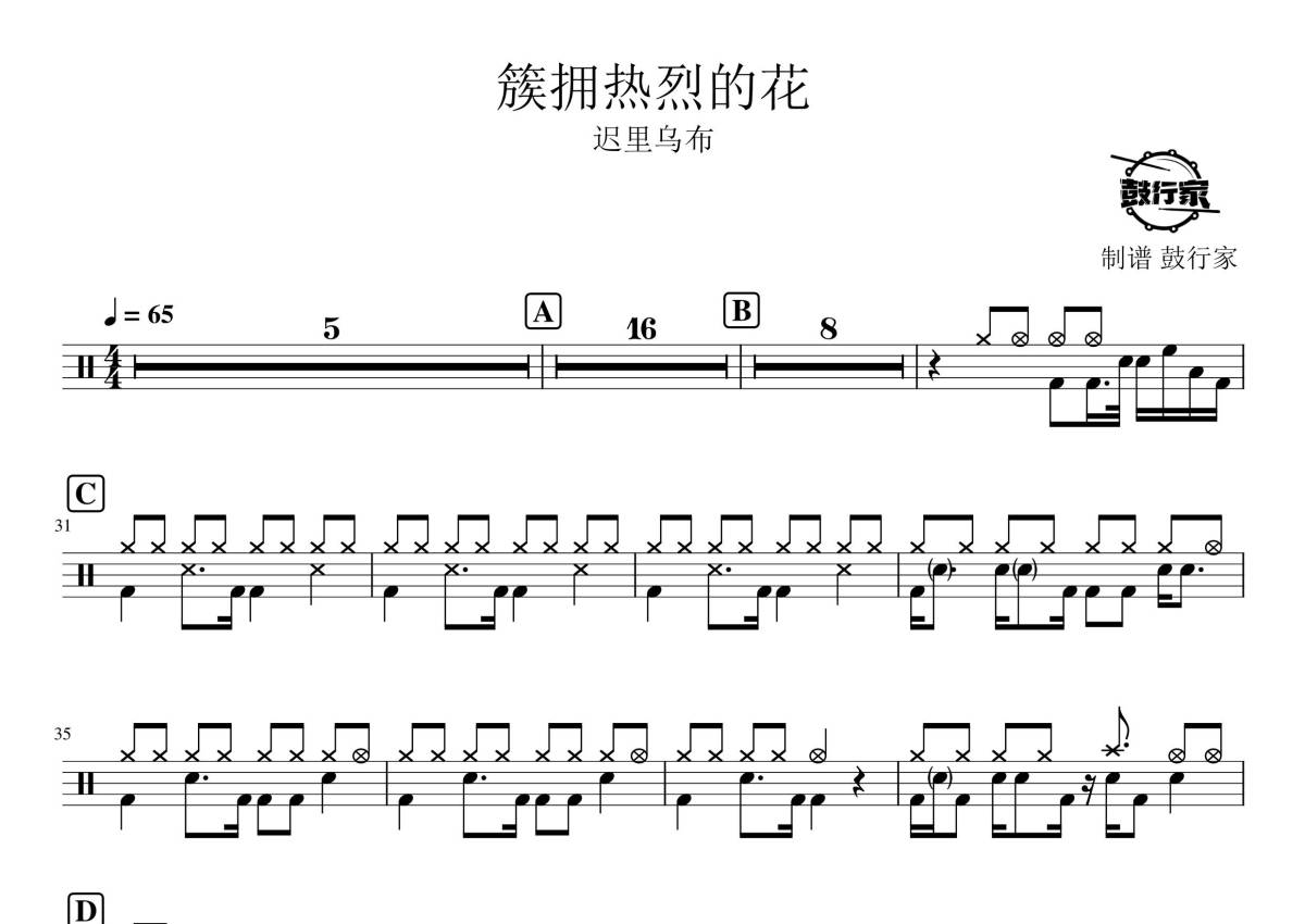 迟里乌布《簇拥热烈的花》鼓谱 - 架子鼓谱