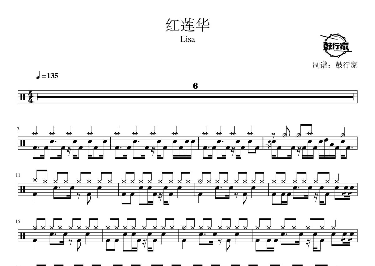 《红莲华》是Lisa演唱的一首歌曲,拍号为4/4拍,歌曲速度为每分钟135拍,这份鼓谱共有三张高清图谱,图谱由 @鼓行家 编配上传,图谱使用五线谱编配,使用这份红莲华架子鼓谱,你将能够轻松地敲打出这首Lisa的红莲华,快来尝试吧。